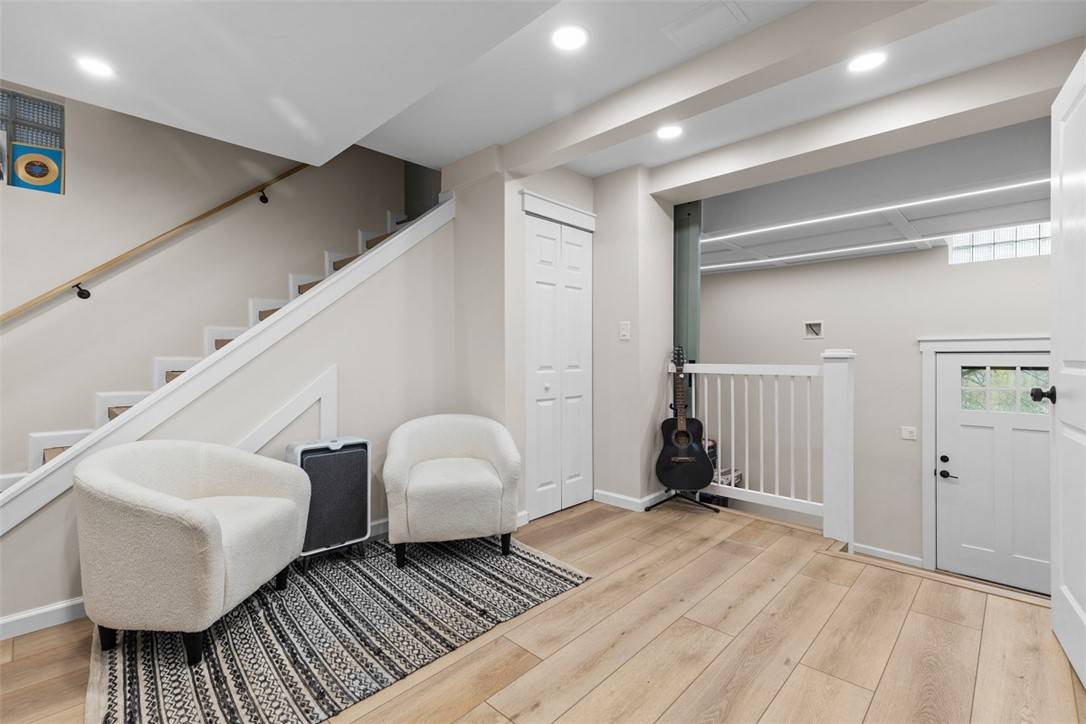 This completely updated home features beautiful finishes throughout. The stunning kitchen offers a large island for gathering with friends and family, and the kitchen sink features under-sink filtration. Quartz countertops and newer stainless steel appliances complete the look. Of the two bedrooms on the second floor, the primary has a 9x6 walk-in closet. There is a full bathroom with a glass enclosed shower, dual shower-heads, and a stand-alone dreamy bathtub on the second floor as well. The expansive third floor bedroom provides a private retreat. The lower level is perfect for entertaining with a built-in bar and more room to play. In the laundry room, there is a built-in doggie-wash for your furry loved ones and plenty of space to organize your clothes. There is also an impressive full bathroom downstairs and an additional flexible room that can serve as a fourth bedroom, home office, den or craft space. This home truly has so much to offer!