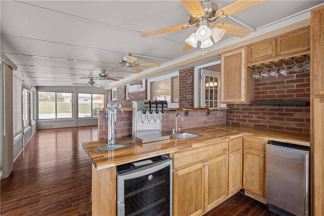 Welcome to this beautiful 3 bed, 2 full bath, stone ranch, minutes from Downtown. Refreshed from top to bottom, this home offers modern style, with indoor/outdoor living spaces that are hard to find. Step inside to discover fresh paint, new light fixtures, new doors with hardware, new trim and baseboards. The updated kitchen has ceramic tile flooring, new backsplash, stainless appliances, and under-cabinet lighting. Both full baths have been upgraded. The rear family room adds versatility with new LVP flooring and a fully equipped bar with storage, ice maker, and a beer tap; perfect for entertaining. New BALI window treatments add an elevated touch. The lower level includes a bonus room with new LVP, a freshly carpeted game room, and extra storage. Enjoy outdoor living with a kitchen with gas grill, sink, a gas line to a firepit, and a pergola w/ electric. An extra-long garage and double-wide drive provide ample parking and storage, while a 1-year home warranty adds peace of mind.